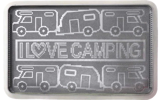 Diese Schuh-Unterlage mit Rand sorgt für einen sauberen Camping-Wohnraum.