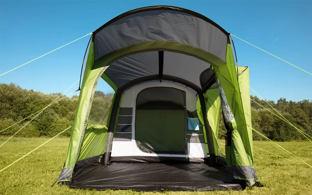 Dieses aufblasbare Zelt lässt sich schnellund einfach aufbauen und bietet durch seine zwei Eingänge, den Vorraum mit Stehhöhe und praktischem Organizer am Innenzelt überraschend viel Platz und Stauraum. Das Vordach kann mit einem Fiberglasstab aufgebaut werden, während das integrierte Luftgestänge innerhalb von wenigen Minuten aufgeblasen ist. Das Zelt bietet Platz für 3 Personen, womit es optimal geeignet ist für kleine Familien, Paare oder einen Kurztrip mit Freunden. Die komfortable Stehhöhe beträgt 210 cm.