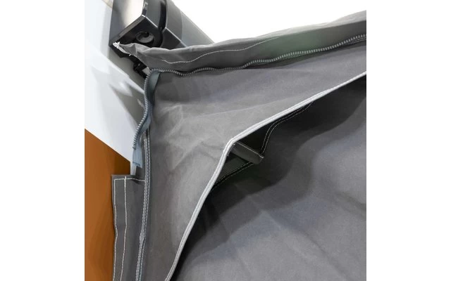 - Front- und Seitenwände lassen sich per Reißverschluss anbringen und sorgen für ein großzügiges Raumgefühl