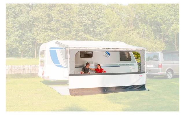 Toller Schutz vor unerwünschten Blicken und Witterungseinflüssen wie Sonne und Regen. Kinderleicht angebracht und passend für alle Kurbelmarkisen mit Kederschiene in der Frontleiste. Ausgestattet mit einem großen Fenster und einer grauen Bodenverlängerung. Aus wasserabweisenden, UV-beständigem und waschbarem Material. Neuer, attraktiver Look mit frischen Farben und tollem Design. Spannbänder und Erdnägel sind im Lieferumfang erhalten.