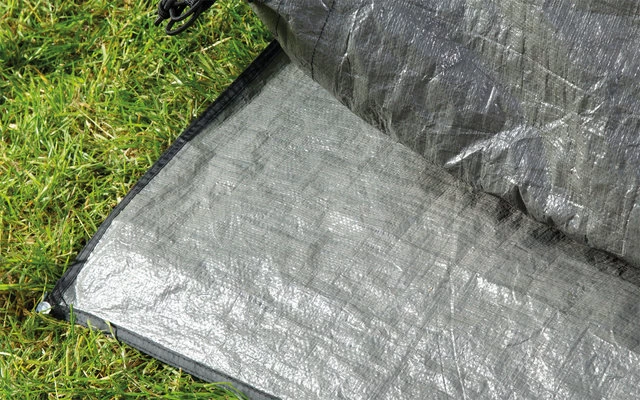 Diese praktische Unterlage hält Ihren Zeltfußboden sauber und schützt ihn vor Abrieb und Schäden. Darüber hinaus fungiert sie als Isolierschicht zum Schutz vor der Bodenkälte. Die Unterlage sollte vollständig vom Zelt überdacht sein, damit sich kein Regenwasser unter dem Boden sammeln kann.