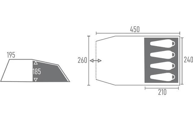 - Innenmaße: 240 x 210 x 185 cm
