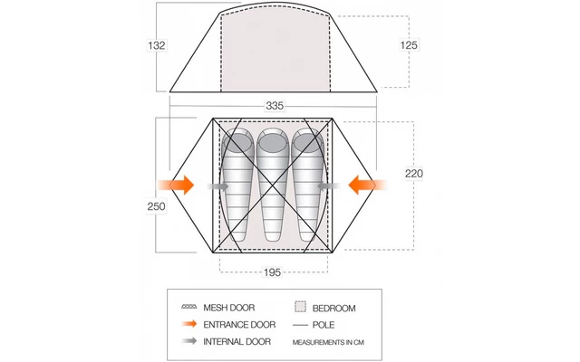 Das Tryfan profitiert von einem großzügigen Innenraum mit viel Luftzirkulation, mit 2 extra großen Seitenschlitzen und Netztüroptionen.
